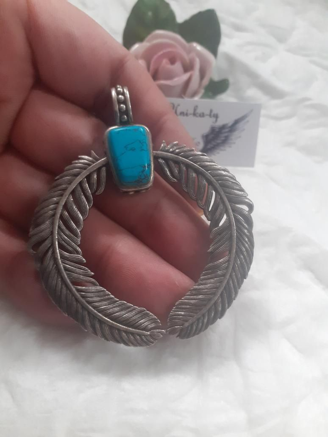 Riesiger Anhänger mit Türkis und Federn