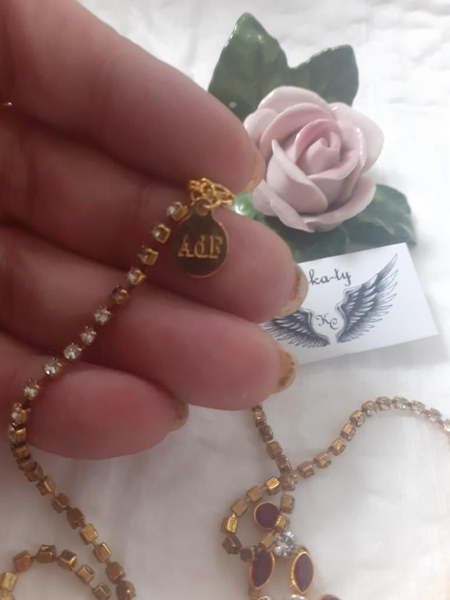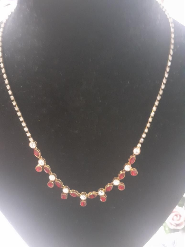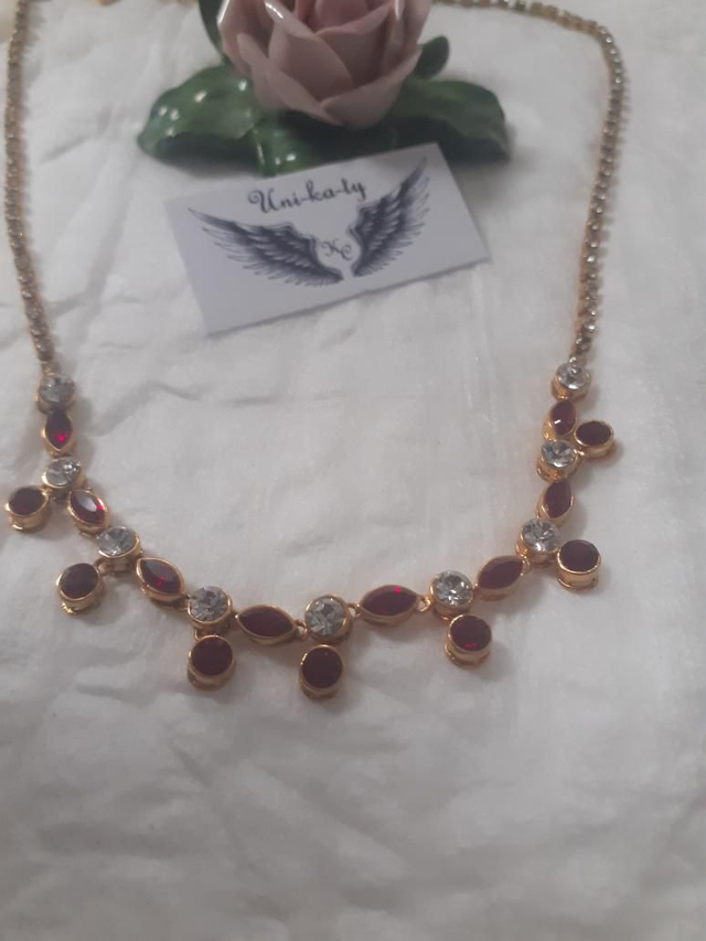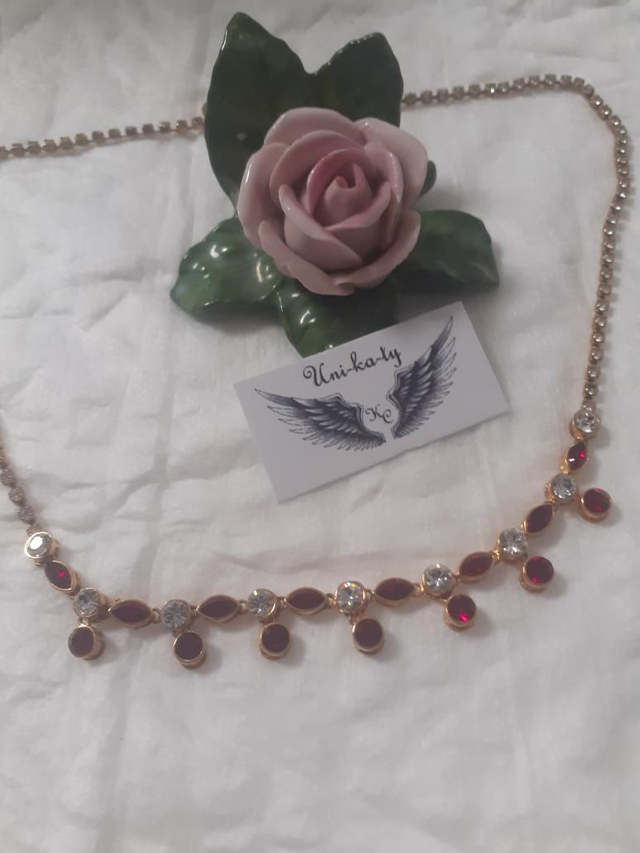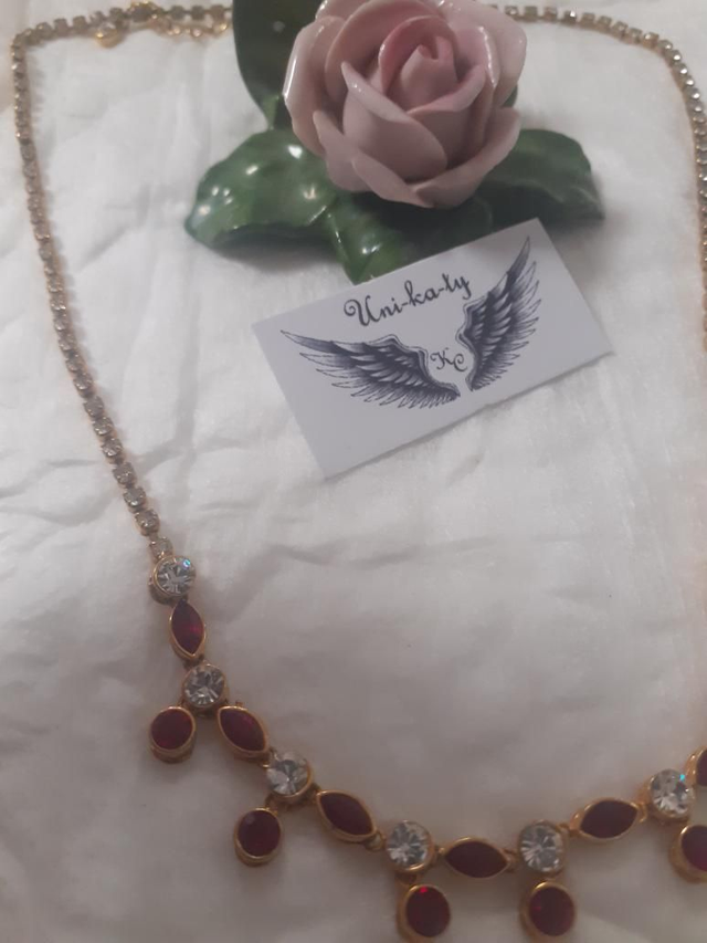 Schöne Strasskette hochwertig vergoldet mit Roten und Weissen Strasssteinen